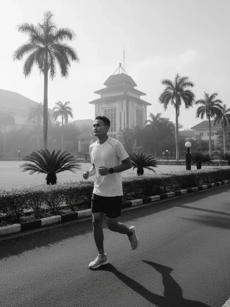 Pagi tadi aku berlari—kebiasaan yang kupikir bisa menipiskan segala yang menumpuk di kepala. Sepuluh kilometer. Lima kilometer pertama kuhabiskan dengan ritme yang biasa, kaki menapak aspal, napas membentuk awan kecil di udara dingin. Sisanya, jujur saja, lebih banyak jalan daripada lari. Perutku protes, mungkin karena akhir-akhir ini aku sering telat makan. Masuk angin, kata orang. Tapi aku lebih suka menyebutnya: tubuh yang menagih janji, tubuh yang mengingatkan bahwa aku terlalu sibuk menghindari rasa sepi sampai lupa merawat diri. Setiap langkah di jalan itu seperti mengetuk pintu kenangan—dan selalu, entah bagaimana, bayanganmu ikut berlari di sampingku. Bukan nyata, tapi cukup untuk membuatku melirik ke sisi kiri, seolah kamu ada di sana, senyum kecil di bibirmu yang selalu berhasil membuat dunia terasa lebih sederhana.